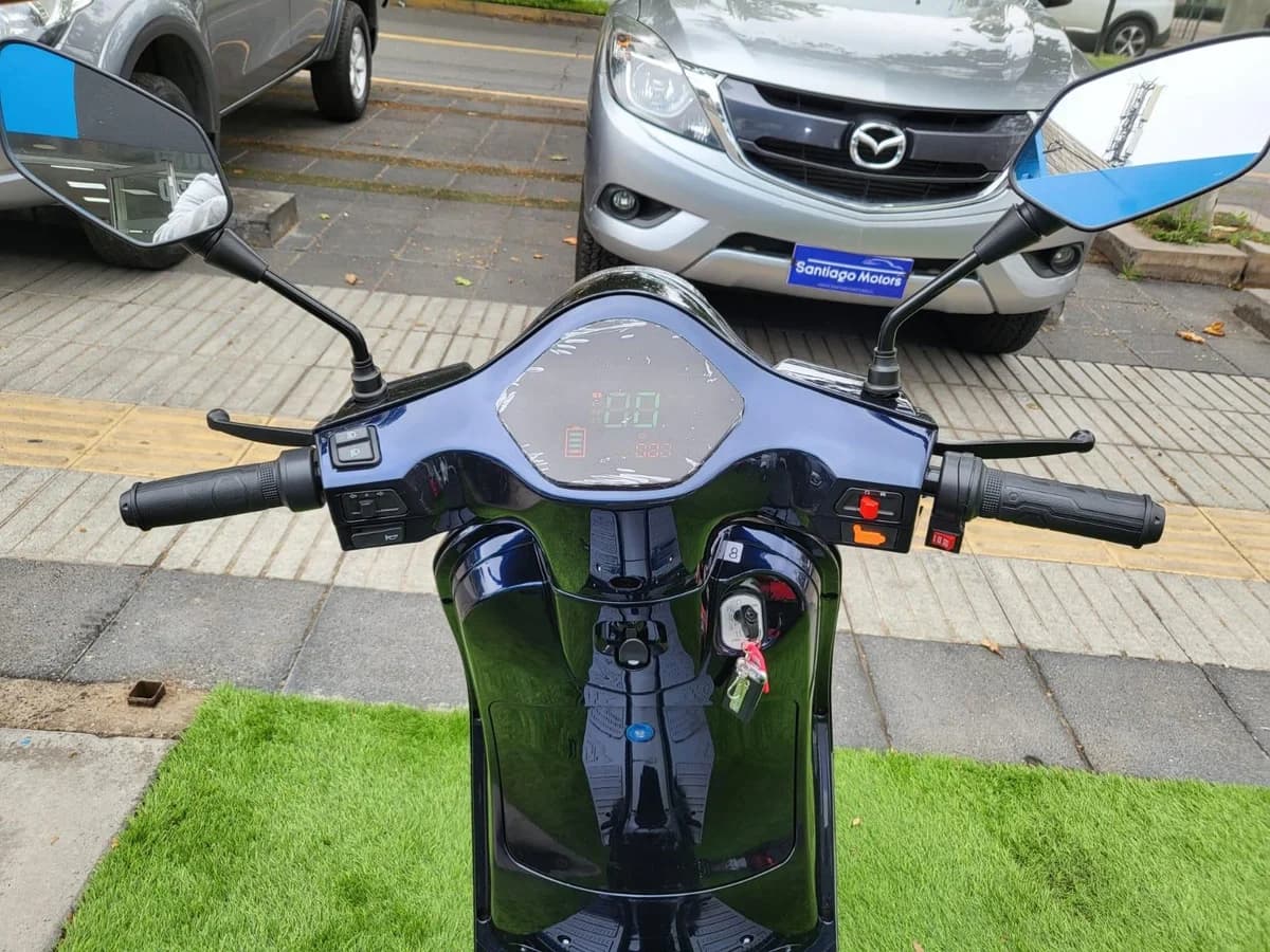 NUEVA COLOR: AZUL CARACTERISTICAS DEL VEHICULO: MOTO ELECTRICA POTENCIA MOTOR: 2 KW TIEMPO DE CARGA DE BATERIA: 4 HORAS FRENOS DELANTERO : Disco Hidraulico FRENO POSTERIOR: Tambor VELOCIDAD MAXIMA: 55 KM/H AUTONOMIA MAXIMA: 80 KMS PESO NETO: 102 KG CAPACIDAD DE CARGA: 150 KG CARACTERISTICAS: Pantalla LCD